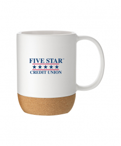 13 oz stoneware: matte color out / gloss color in with cork baseHand wash recommended. Do not microwave. Complies with FDA, Prop 65. 4.625" H x 5" W