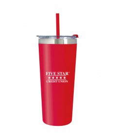 Stainless Steel Outer And Inner. Powder Coated Finish. Double Wall Construction For Insulation Of Hot Or Cold Liquids. Vacuum Insulated. Screw-On, Spill-Resistant Flip Top Lid with Straw Hole. Non-Slip Bottom. Complies with Prop 65. 8" H