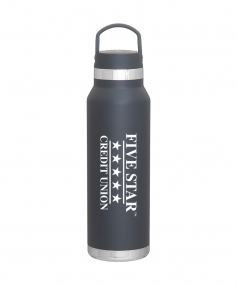 25 oz double wall 18/8 stainless steel thermal bottle with copper vacuum insulation, threaded insulated lid with carrying handle, high polish accent, stainless steel base, and powder coated finish. Hand wash recommended; Do not microwave. Dimensions: 10 H x 3".