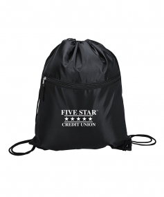 Sport bag with a contrast color front-zippered pocket, reinforced corners and a drawstring closure. Drawstrings double as backpack straps. 12 1/2" W x 15 1/2" H x 3/16" D.