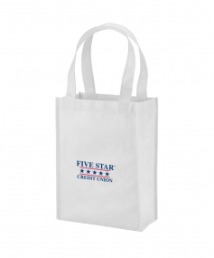 Constructed of 80 GSM non-woven polypropylene. Easily fits standard magazines & notebook paper. Reinforced 18" handles. 4 1/2" gusset. Complies with Prop 65. 12" H x 9" W x 4 1/2" D