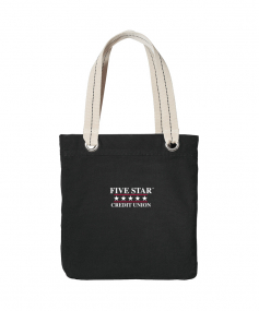 The Allie Tote is perfect for shopping, commuting or sightseeing. Contrast lining, striped handles and large metal grommets add a touch of whimsy to this casual tote. 11 Oz., cotton canvas. Interior zippered pocket. 13.25" W x 15.75" H x 3.5" D.