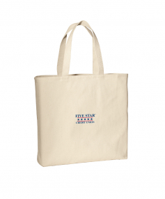 10 Oz., 100% cotton twill with cotton web handles. Approx. 588 cubic inches. Complies with Prop 65. 14" W x 14" H x 3" D
